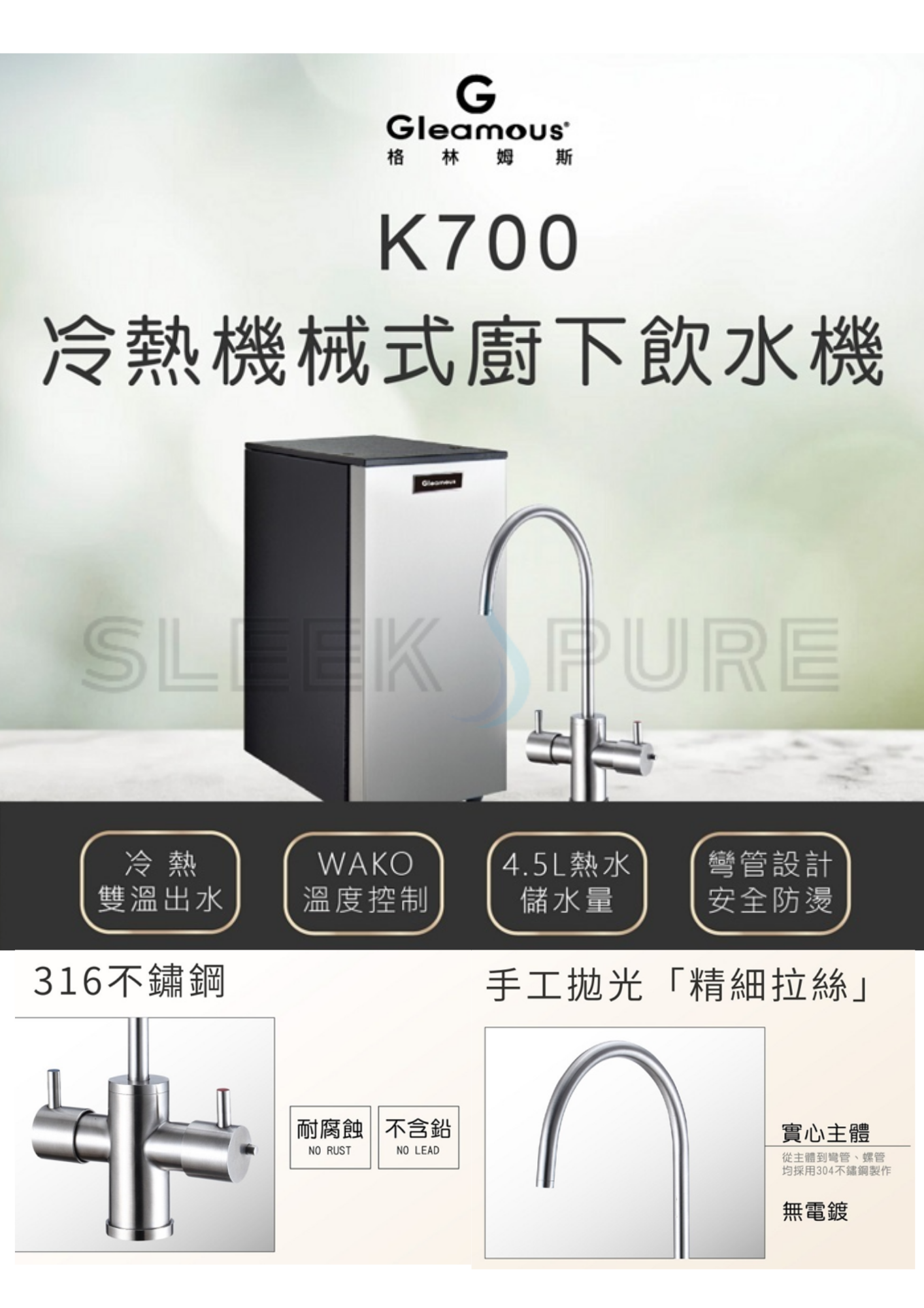 Gleamous 廚下型飲水機k700