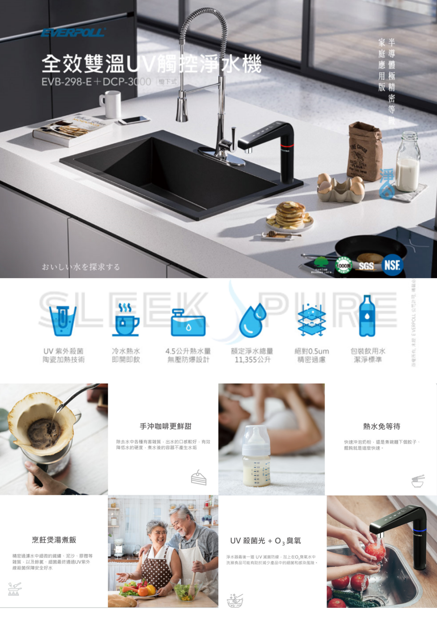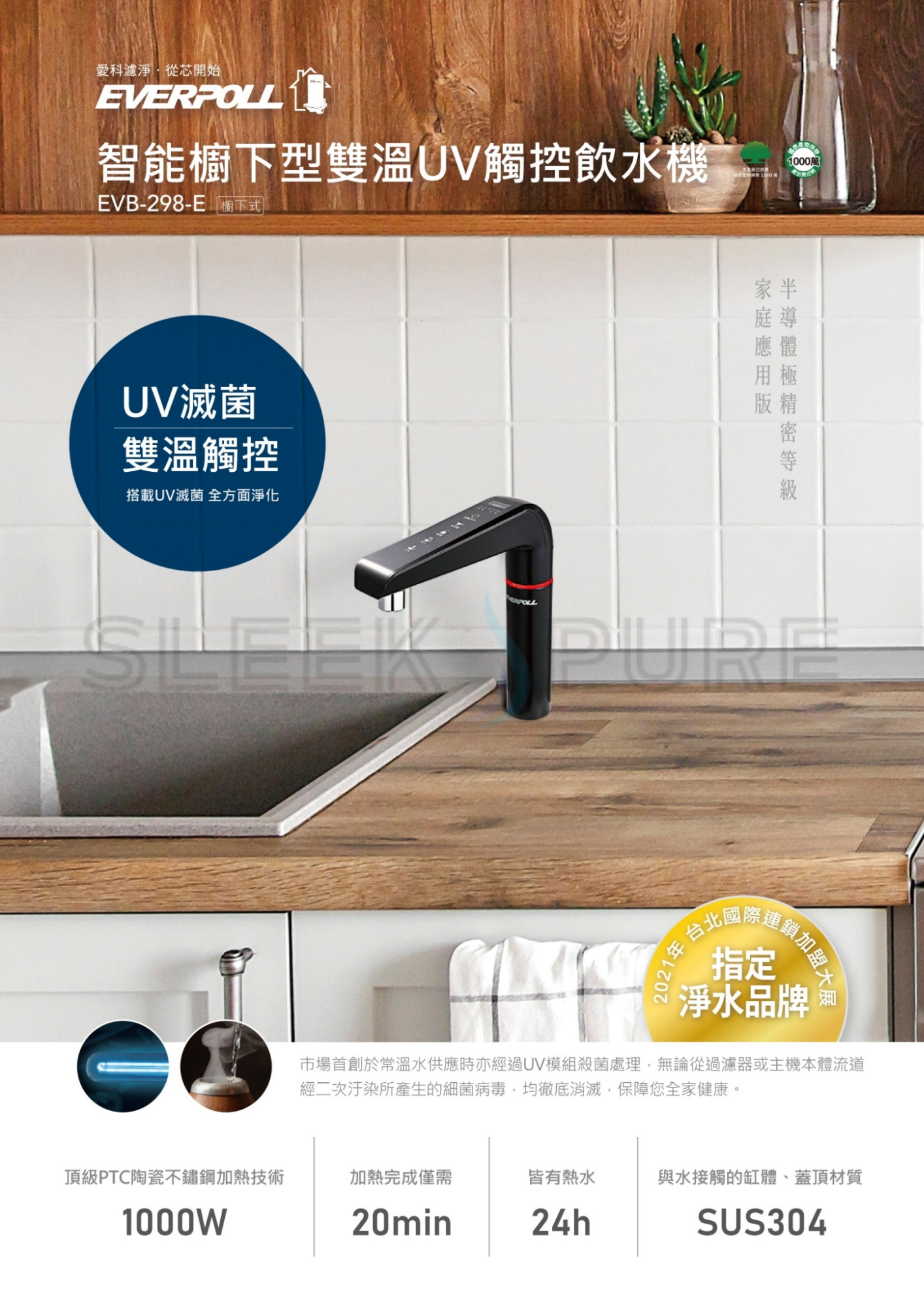 EVERPOLL 廚下雙溫UV觸控飲水機EVB-298