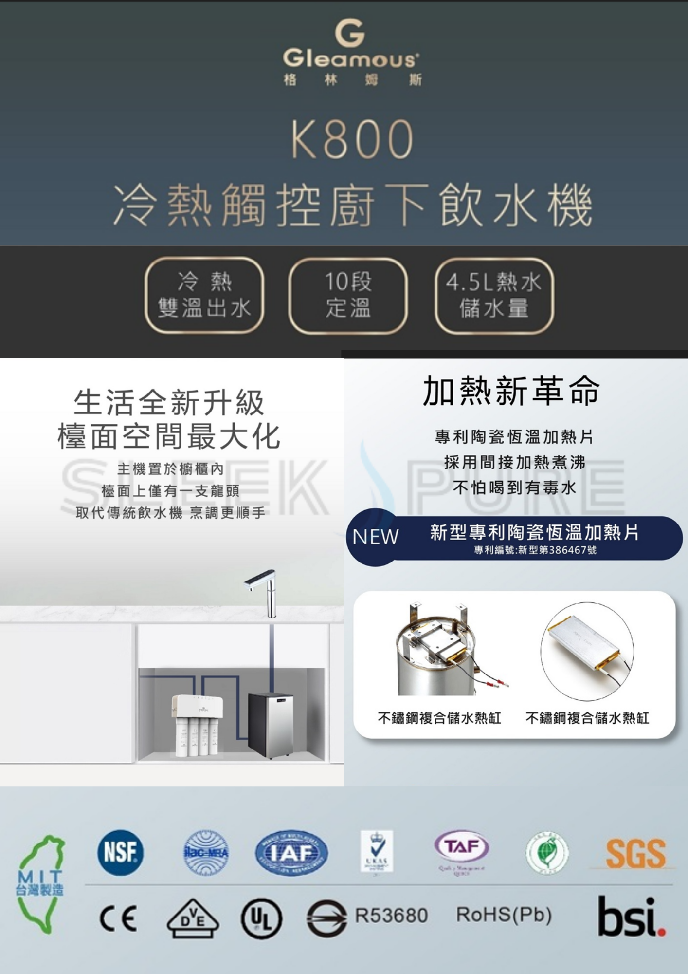 雙溫觸控出水 專利台面蒸氣排放口 內建漏水漏電斷電裝置