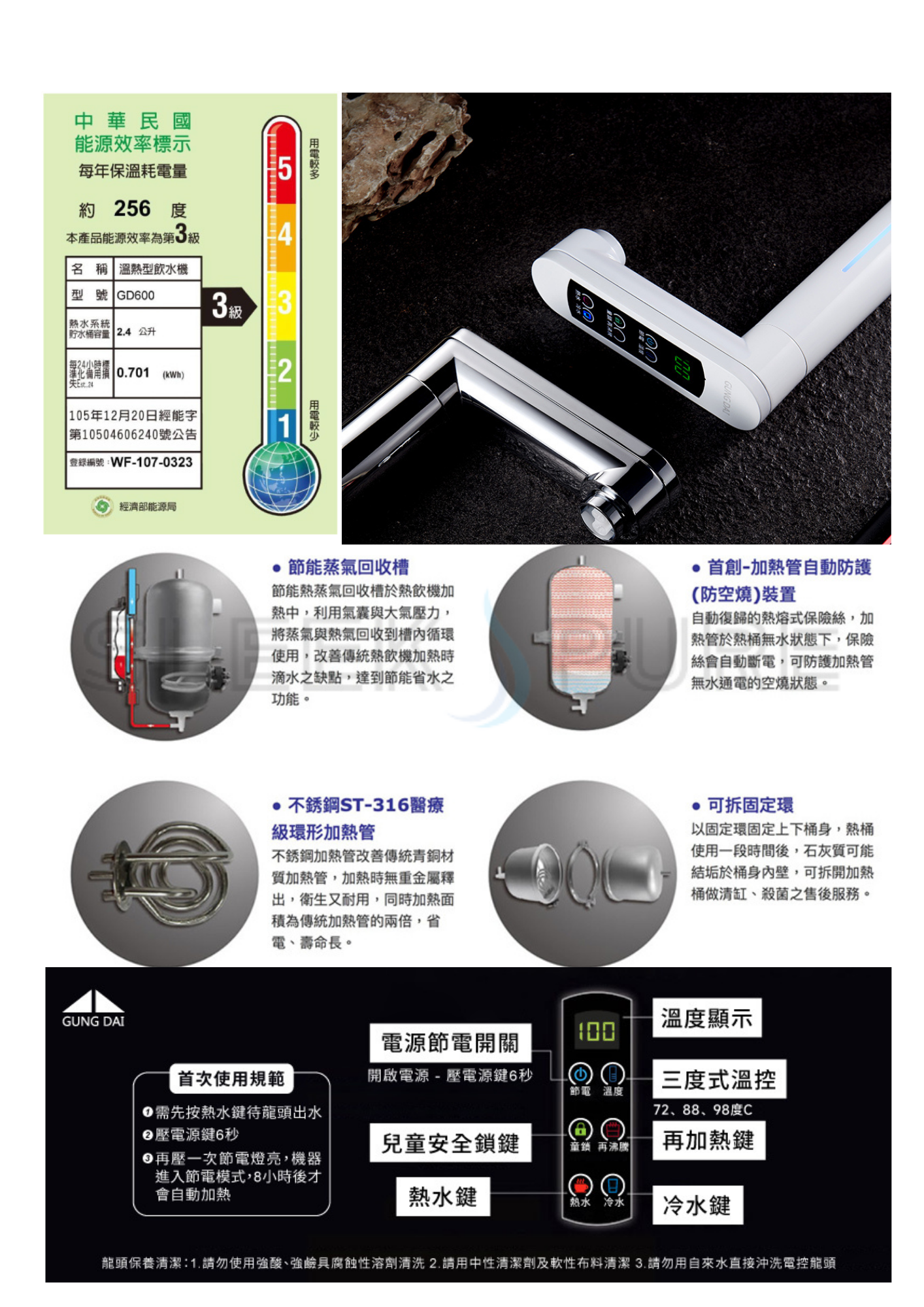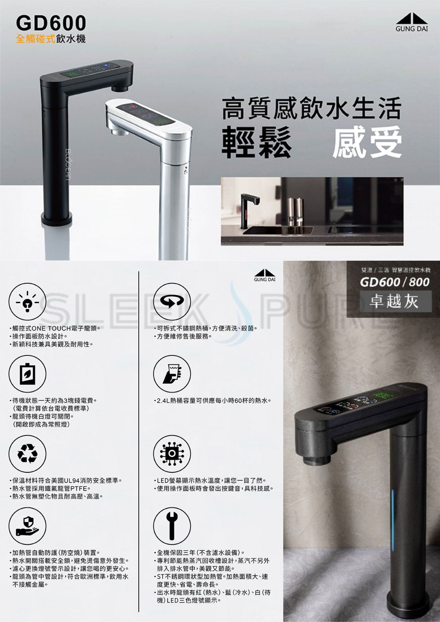 GUNG DAI 廚下觸控式雙溫飲水機GD600